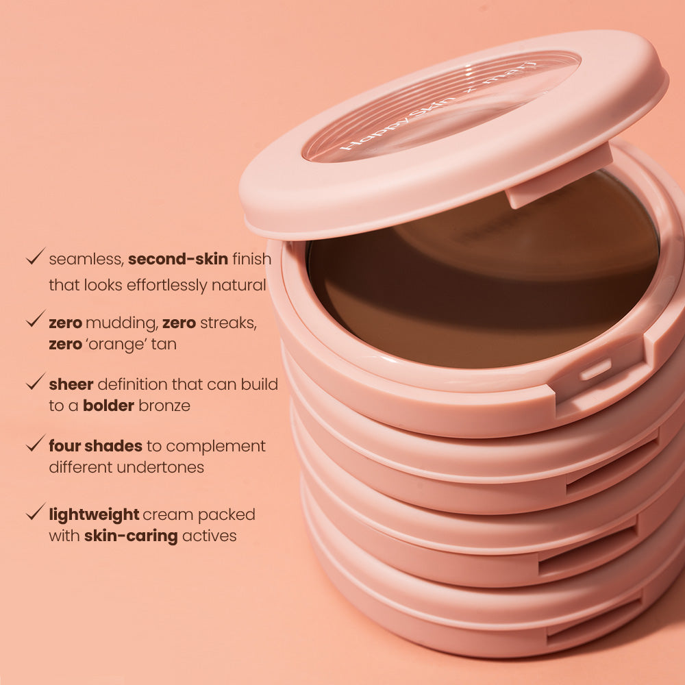 Apply where the sun would naturally hit—cheeks, nose, forehead & chin and blend with a brush. Layer to achieve desired intensity.